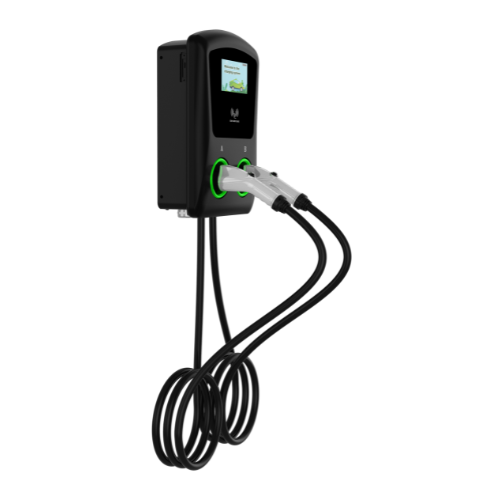 Dotée de deux connecteurs de type 1 (J1772), permettant de charger un véhicule à pleine puissance (19,2 kW) ou deux véhicules simultanément à puissance réduite.Les deux prises de recharge sont contrôlées intelligemment par un système de gestion de charge intelligent qui règle et optimise la distribution de puissance pendant l’opération.